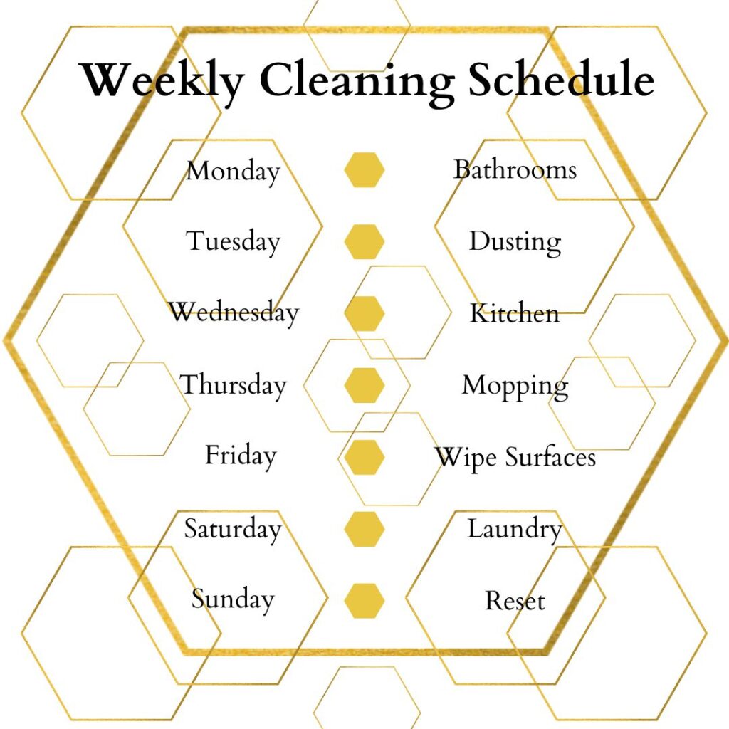 The whole point of having a cleaning schedule is to try and prevent having an overwhelming day of chores all at once. While this method may work for some people, or it may be what fits your lifestyle best, I found it to be a bit too much for me. I do still have days that are more full of tasks than others, but by spreading them out, it allows me to focus on these things more, per it’s assigned day. If I miss a day of chores for whatever reason, I then add it to my to-do list for the next day.